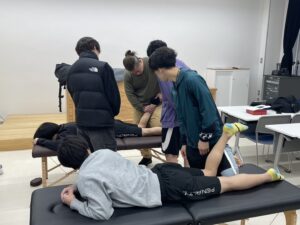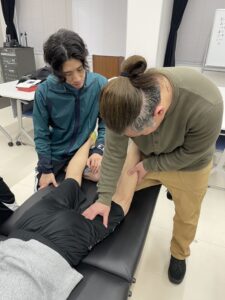 初日は学生、有資格者の方をメインにとしたアナトミートレイン(下肢応用編)を前回の基礎編を復習しながらの実技をメインに行いました。